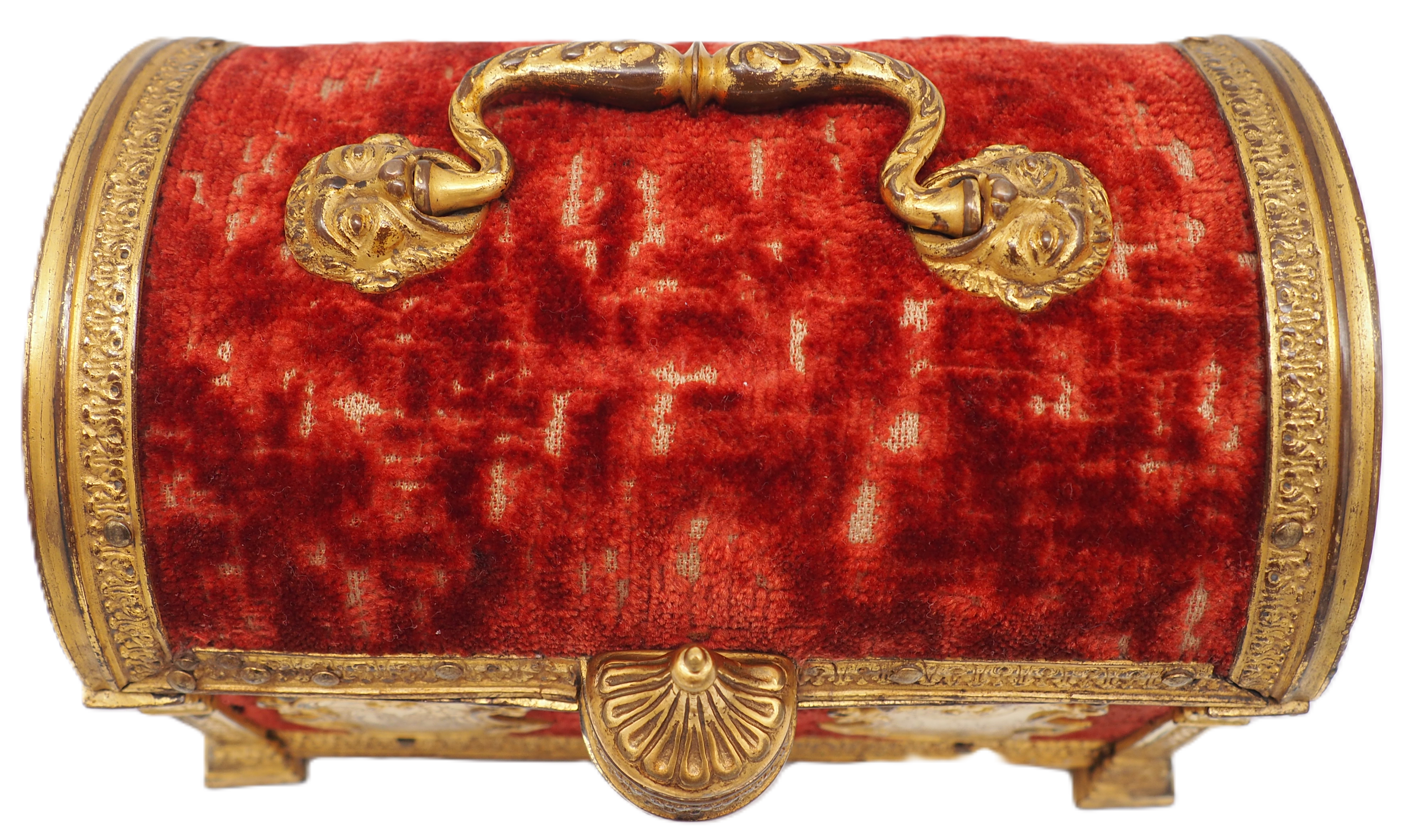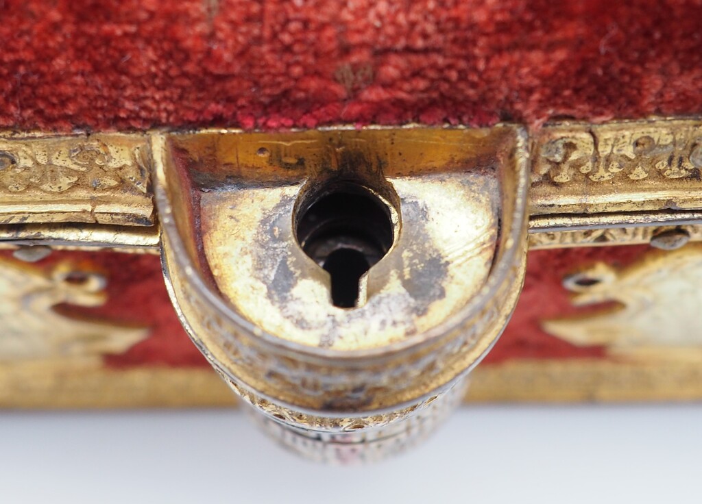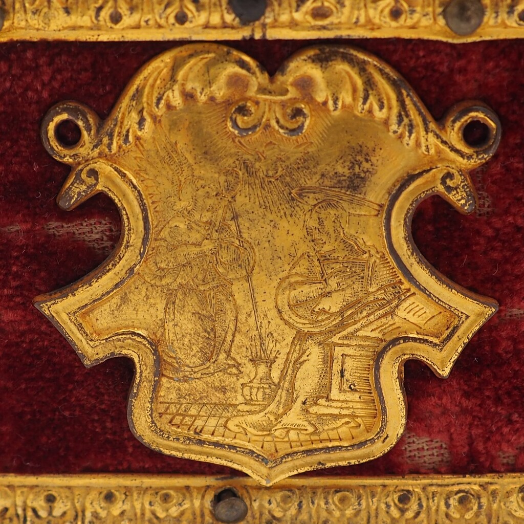 Auktionshaus Sotheby’s: A gilt-bronze-mounted and velvet covered casket probably Italian and 16th century, Lot 522. In: The Gustav Leonhardt Collection, Property From The Bartolotti House, 29.04.2014. https://www.sothebys.com/en/auctions/2014/gustav-leonhardt-collection-l14307.html?locale=en (Zugriff 22.01.2026).