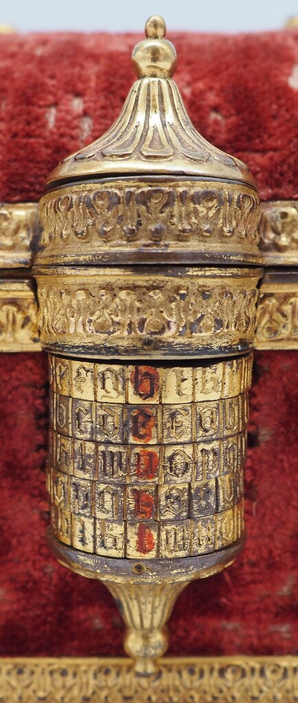 Abb. 4: Detail Kassette „Henri“, Ansicht Buchstabenkombinationsschloss von oben, Frankreich, 16. Jahrhundert. © Schell Collection.