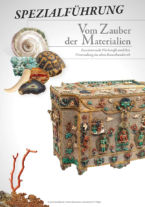 Prächtige Schlösser, fein gearbeitete Schlüssel und kunstvolle Kästchen lassen sich in der Schell Collection bestaunen. Aber haben Sie sich schon einmal die Frage gestellt aus welchen Materialien sie gefertigt wurden? Diese Spezialführung dreht sich ganz um das Thema der aktuellen Sonderausstellung „Vom Zauber der Materialien. Faszinierende Werkstoffe und ihre Verwendung im alten Kunsthandwerk“. Die Führung fokussiert sich auf die Materialien und Werkstoffe, aus denen die Exponate der Schell Collection gefertigt wurden. Vermeintlich alltägliche Werkstoffe wie Holz, Eisen oder Leder vermögen vielleicht doch noch zu überraschen und mysteriöse Materialien wie Bernstein oder Perlmutt lüften ihre Geheimnisse. Materialien aus den Tiefen des Meeres oder Steine aus dem Inneren der Erde werden an die Oberfläche geholt um ihre Geschichten zu erzählen.